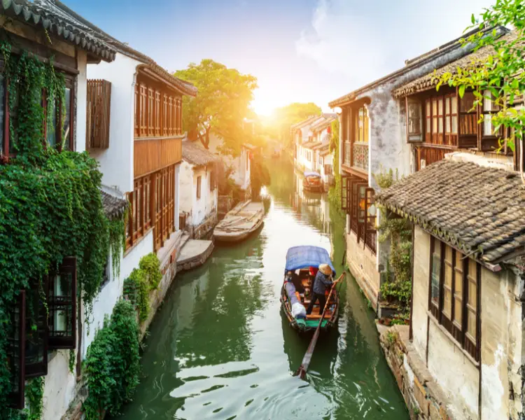 • Thị trấn cổ Chu Trang (Zhouzhuang): Ngồi trên những con thuyền gỗ nhỏ, len lỏi qua các con kênh dưới những cây cầu đá cổ, bạn sẽ hiểu tại sao người ta gọi đây là Venice của Á Đông.