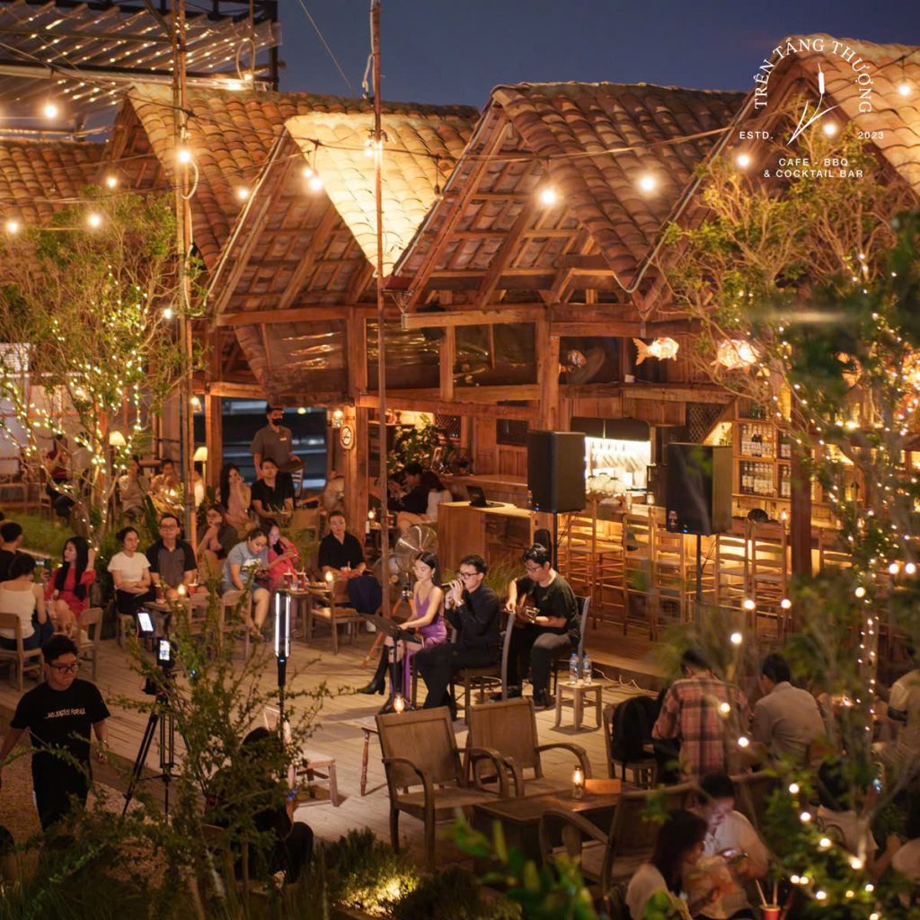 Với không gian trên tầng thượng, Quán Cà Phê Trên Tầng Thượng mang lại cảm giác thư thái và gần gũi với thiên nhiên, giống như bạn đang đứng trên một ngọn đồi nhìn xuống thành phố nhộn nhịp. Không gian xanh mát, những bức tranh hoa cỏ và sắc màu của hoa lá tạo nên bức tranh đẹp mắt nhưng vẫn gần gũi và ấm áp.