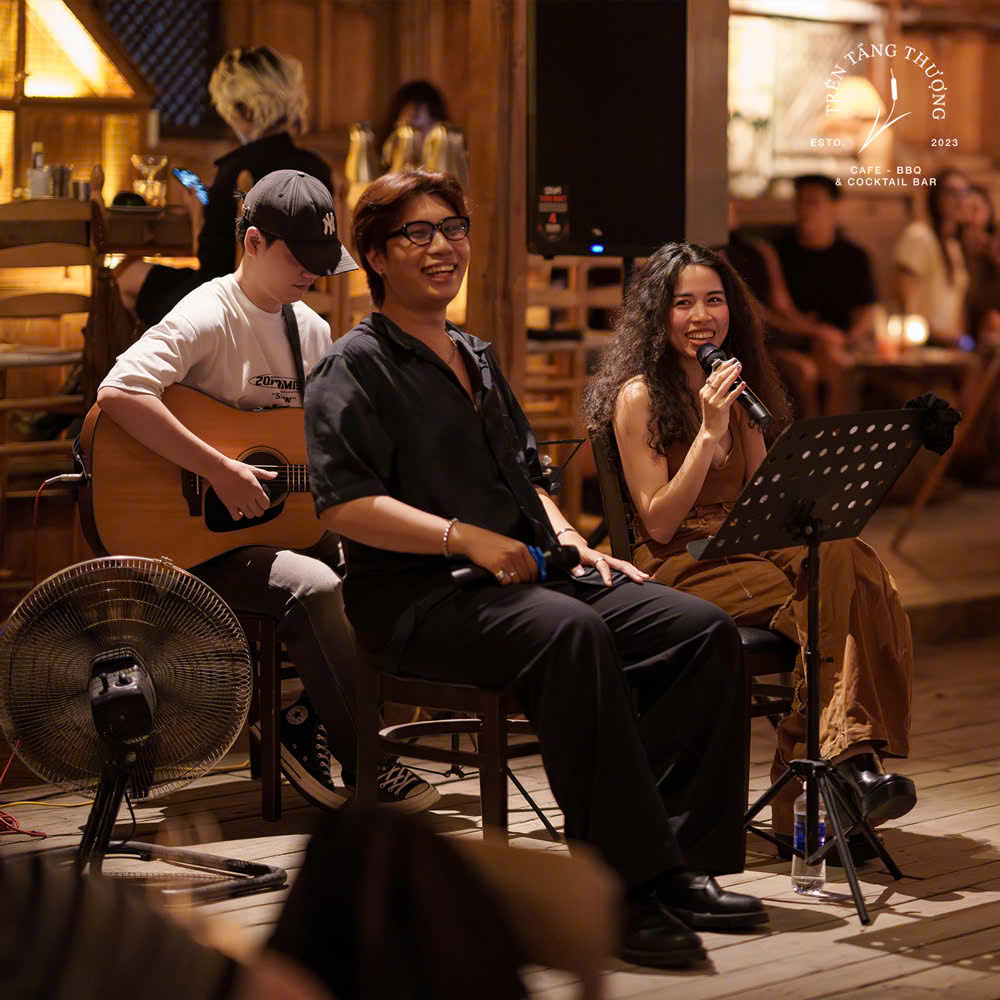 Mỗi ngày tại Quán Cà Phê Trên Tầng Thượng là dịp để bạn thưởng thức những giai điệu nhẹ nhàng và sâu lắng từ những buổi nhạc acoustic. Từ 19h30 đến 21h30, những bài hát dễ thương và ấm áp sẽ làm cho buổi hẹn hò của bạn trở nên thêm đặc biệt và lãng mạn.